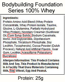 Artificial Sweeteners With the mounting evidence concerning the health risks of artificial sweeteners, a high quality whey protein should not include any of the following sweeteners on its whey protein label. Acesulfame Potassium, also shown on ingredient labels as acesulfame K or ACE or under the brand names Sunette, Sweet One or Sweet’n Safe. The sweetener is known to contain the carcinogen, Methylene Chloride, which is commonly used as a paint stripper, degreaser and an additive in gas. Studies linking Acesulfame-K to different types of tumors, leukemia and chronic respiratory disease in animals are still being debated. Despite controversial findings and the need for further study, the sweetener was approved for human consumption. Aspartame, sold under the brand names NutraSweet, Equal, Spoonful or Equal-Measure, releases methyl alcohol or methanol into the blood stream. The methanol (commonly called wood alcohol) then passes into your blood-brain barrier and is converted into formaldehyde (embalming fluid) which causes damage. Neotame was developed by Monsanto Chemical Corp with a chemical structure similar to aspartane. Even though no long term studies have been done, researchers expect it to be even more toxic than aspartame. Sucralose is another popular sweetener sold as a sugar substitute known as Splenda and is 600 times sweeter than table sugar. Sucralose is a synthetic compound, which is basically sugar that has been modified by adding chlorine atoms. Reports on the negative health effects of sucralose are increasing. Sucralose has been shown to destroy 50% the good bacteria in the intestines which support a healthy body. Saccharin and Cyclamate should be avoided. They have been banned in Canada and many other countries. Corn Syrup and corn syrup solids were introduced in 1970 as a cheaper alternative to using sugar. Coincidentally, this coincides with the beginning of today's obesity trend. They are commonly referred to as HFCS (High Fructose Corn Syrup). In Canada, it is listed on labels as fructose/ glucose. There is ongoing debate over HFCS’s impact on health. With HFCS added as a cheap sweetener in so many products, the primary concern is the huge quantity being consumed on a daily basis. ![]() |