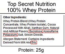 Examine the whey protein label for any mention of soy or soy lecithin.